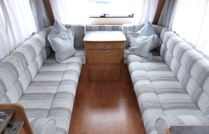 Bench seating converts to single beds or re-arranged over the strong pull-out slats to form a large double 2m x 1.99m.