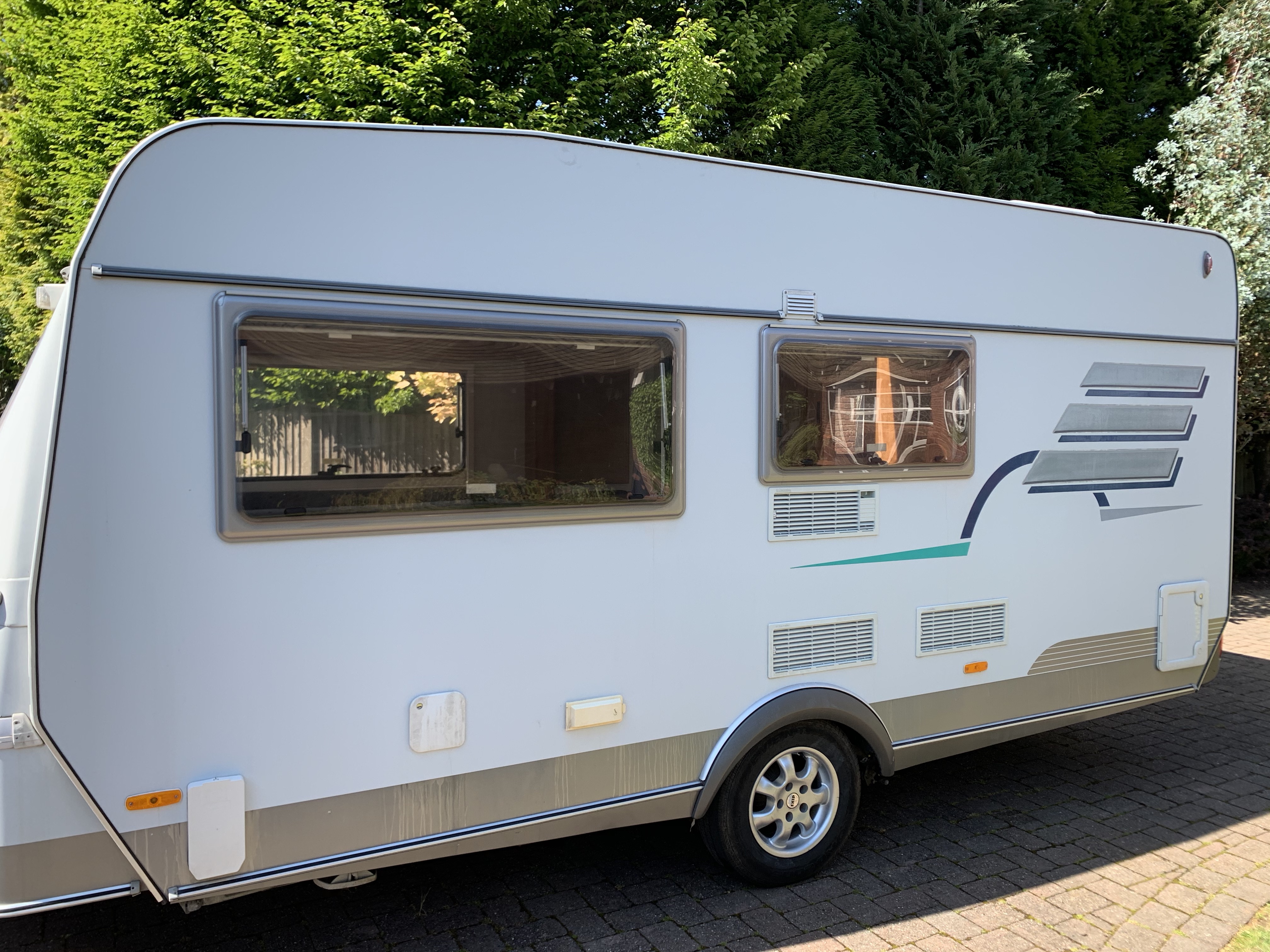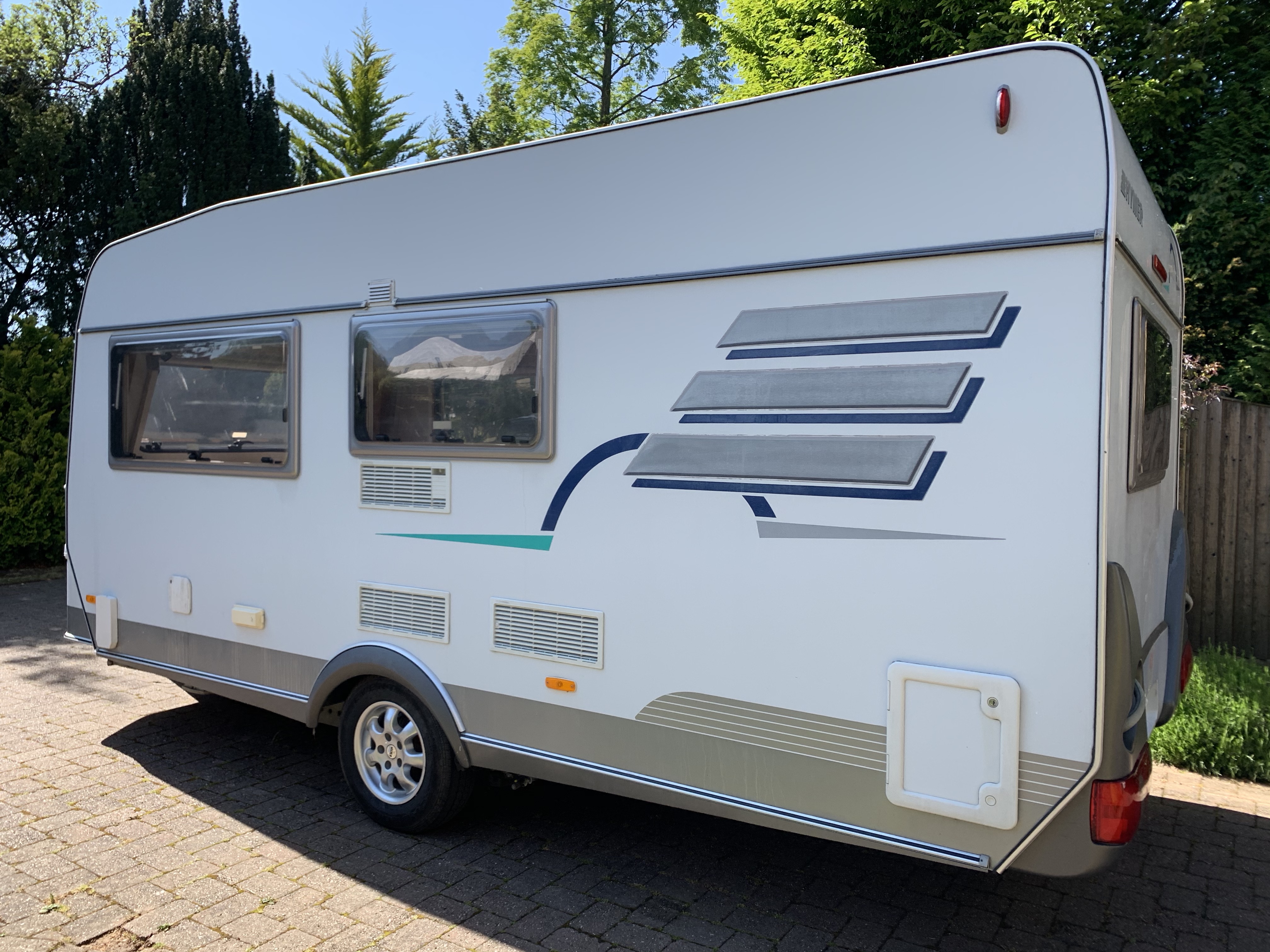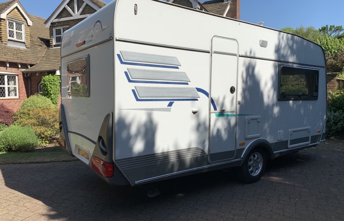 Available with the choice of either a full length enclosed awning or a roll-down Caravanstore sun canopy (both used and unwarranted)