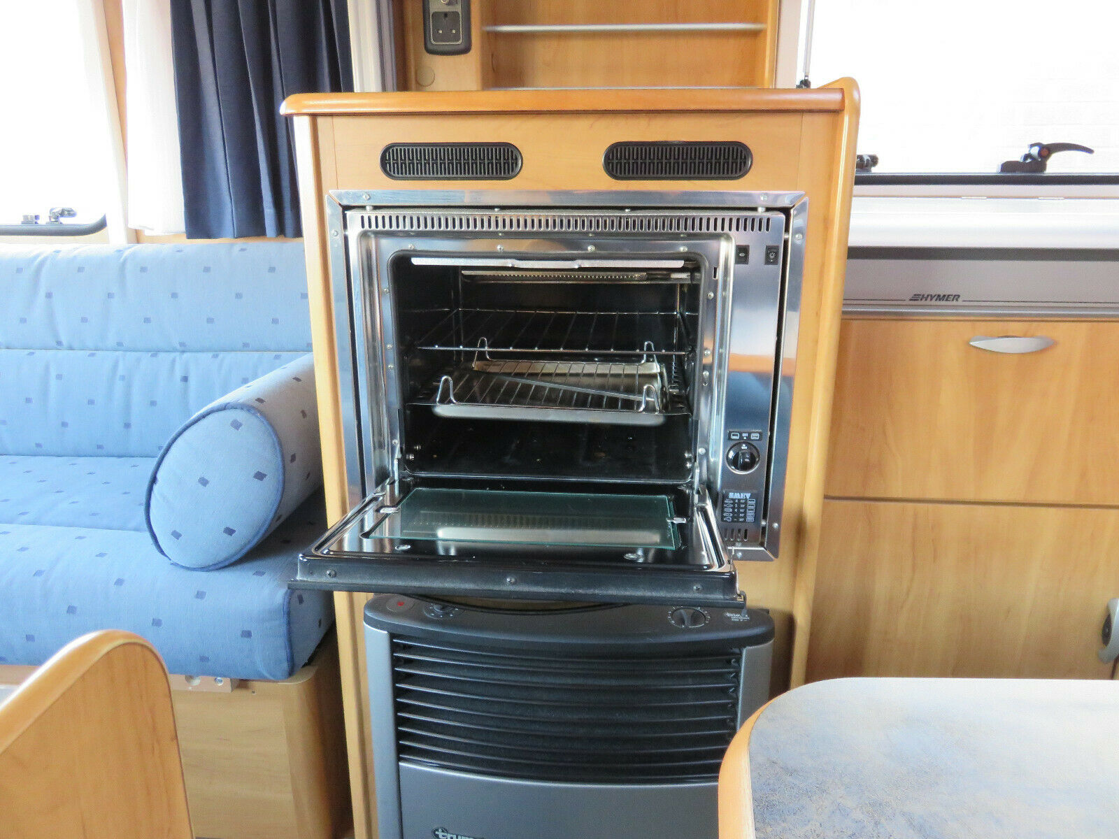 You will find the most widely used appliances installed in Hymers, these will normally be Dometic, SMEV, Truma & Thetford.