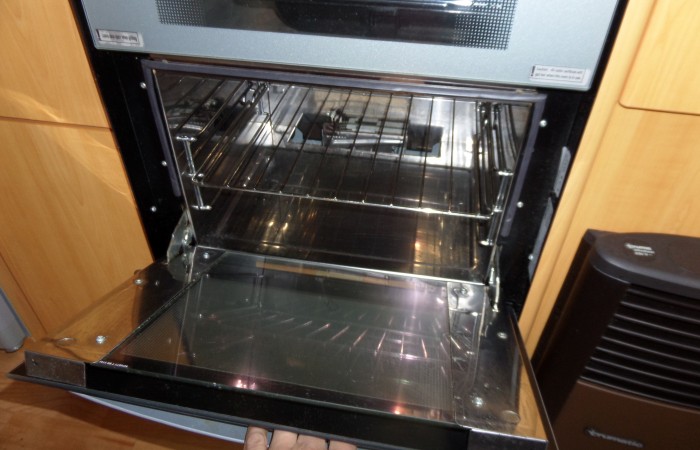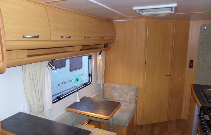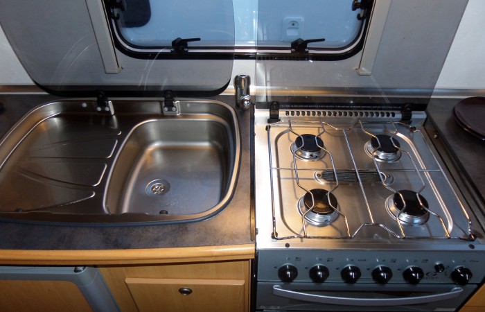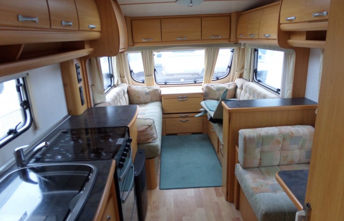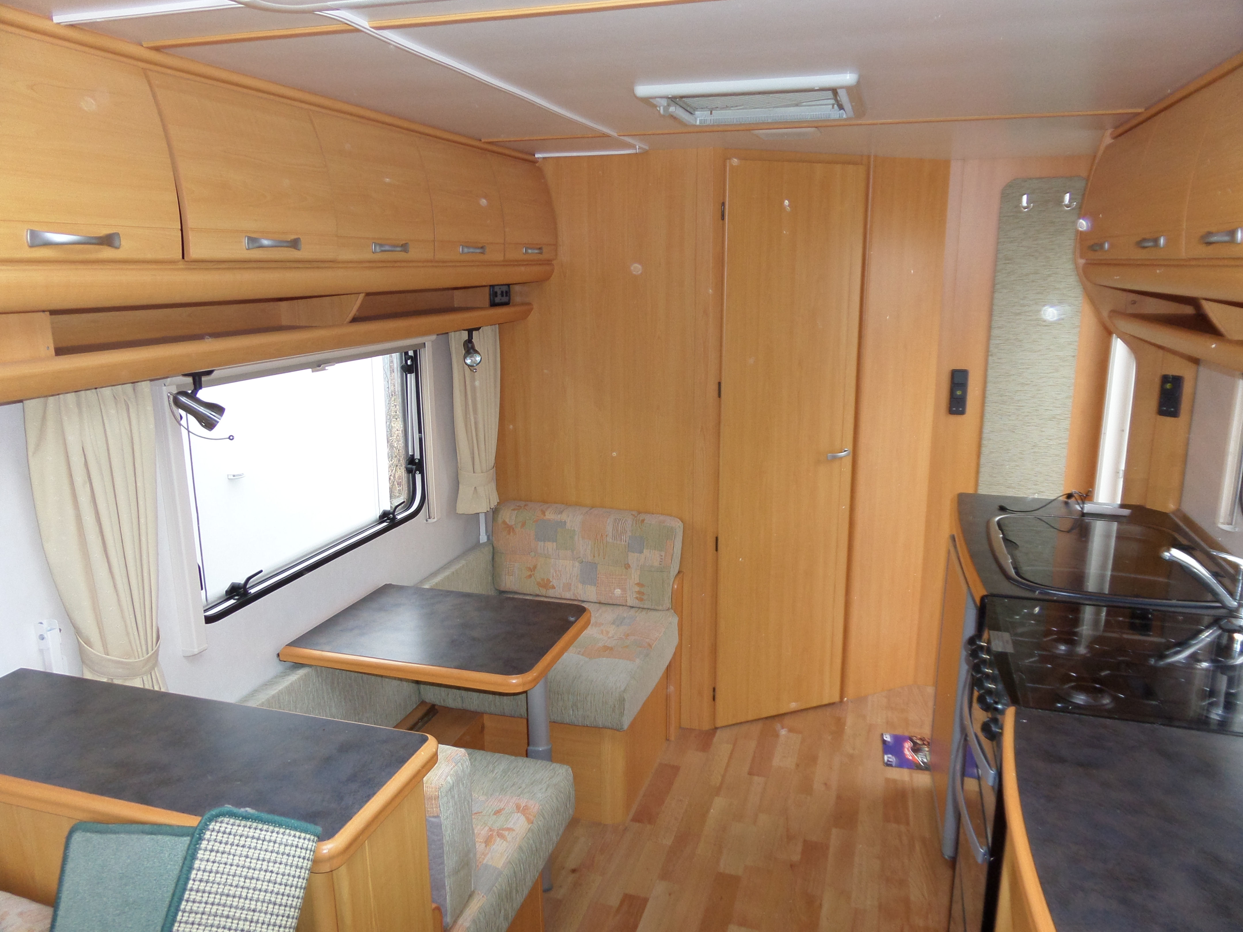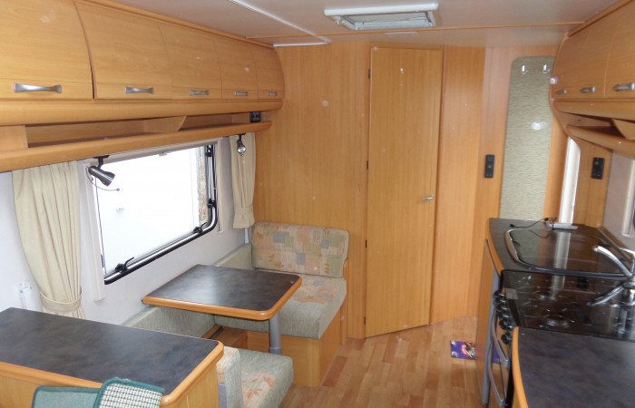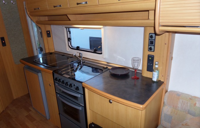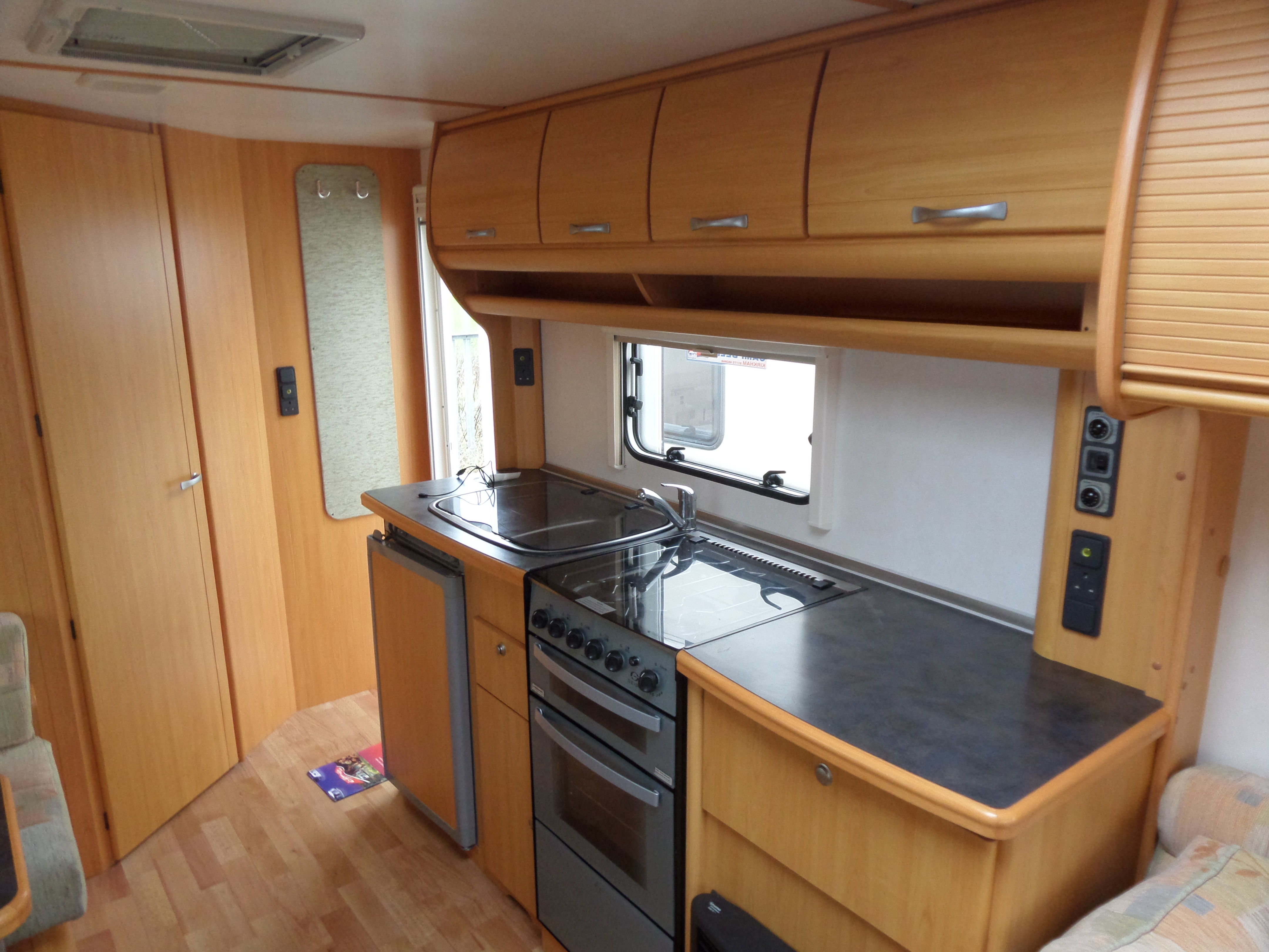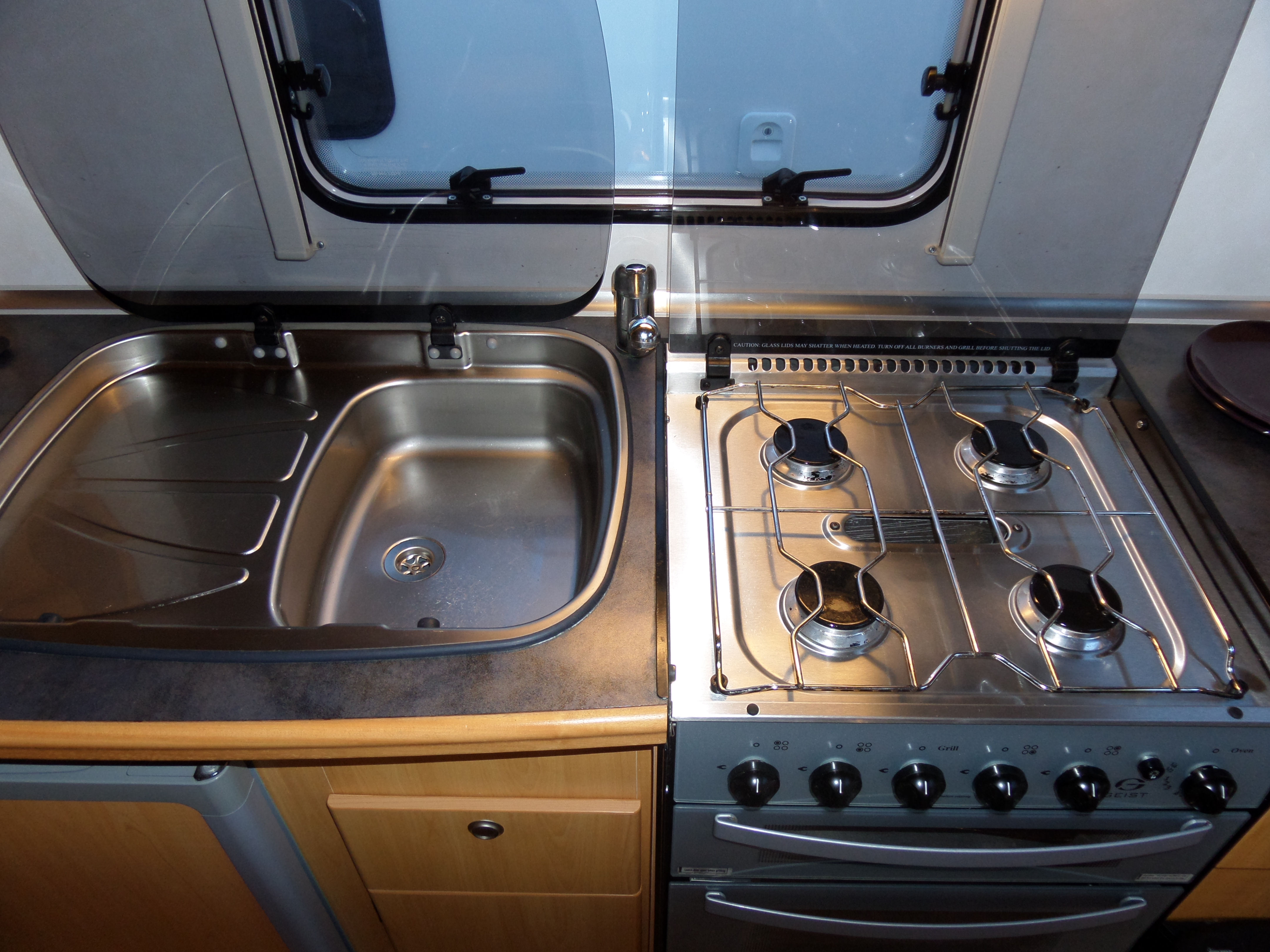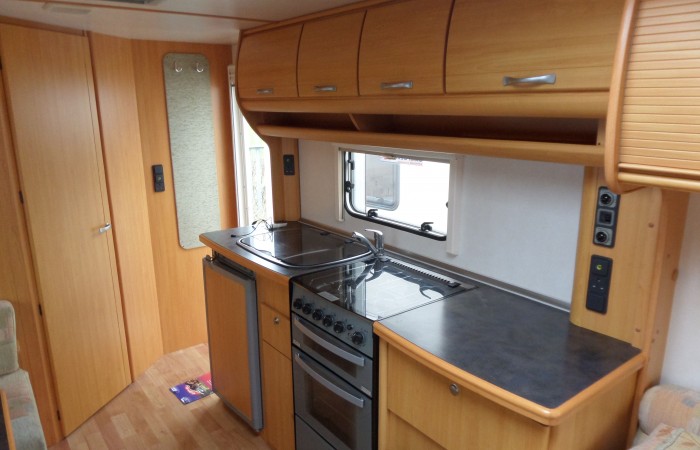 Opposite is the kitchen with full gas oven and grill, gas hob and 3 way fridge.