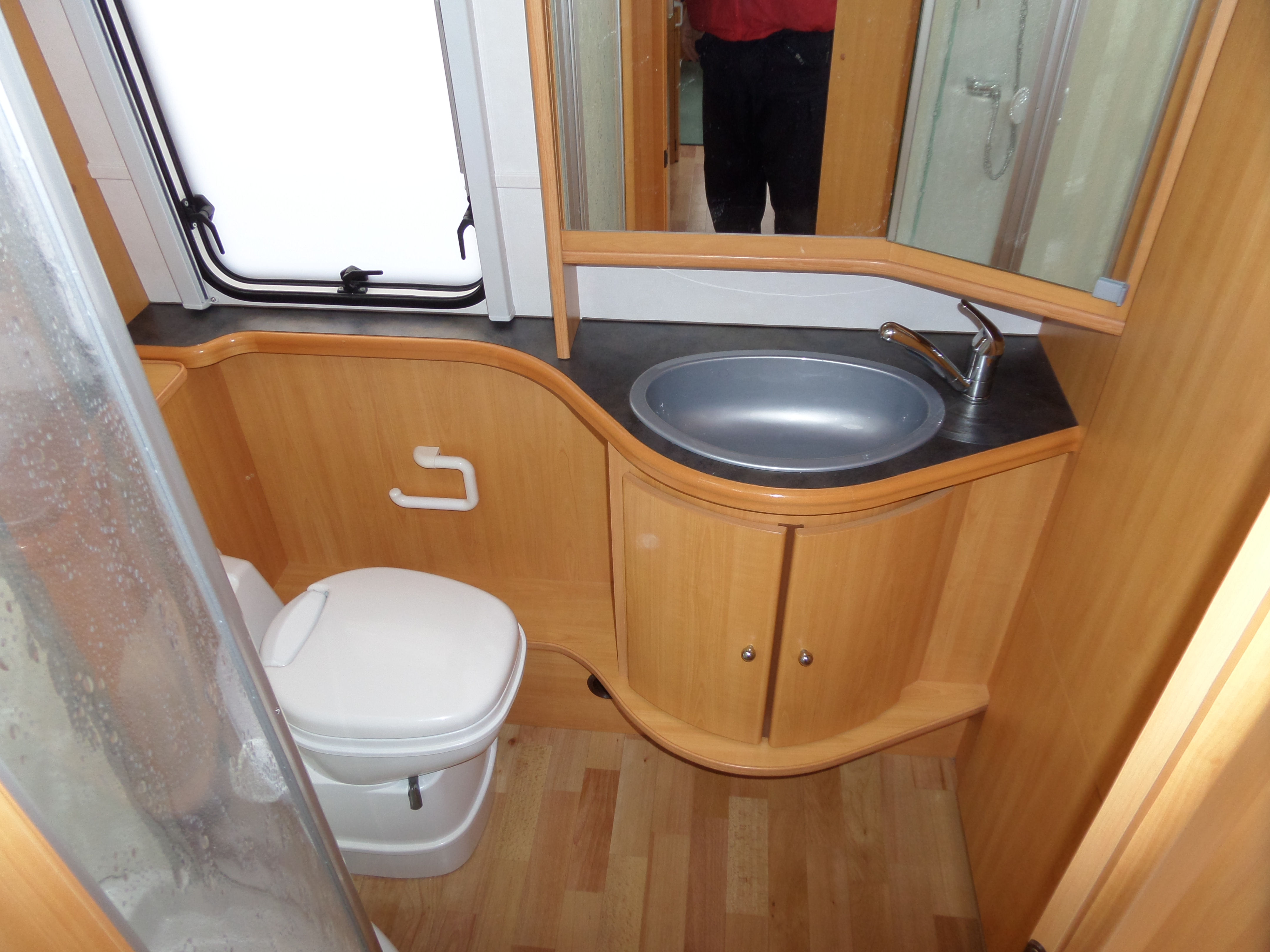 Comes with grey and fresh external containers, mains lead, step, battery and spare wheel.