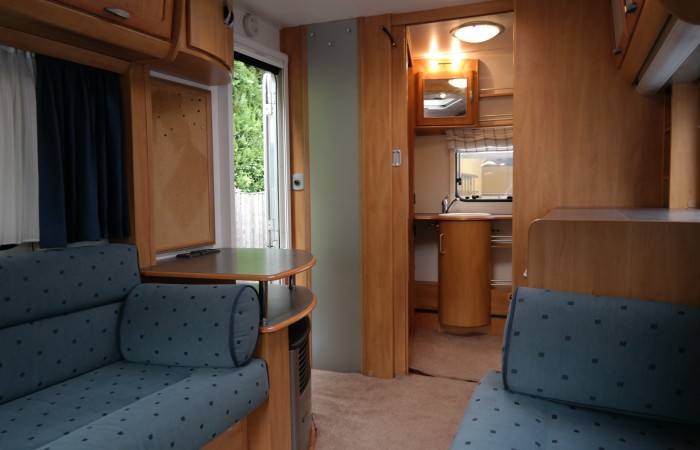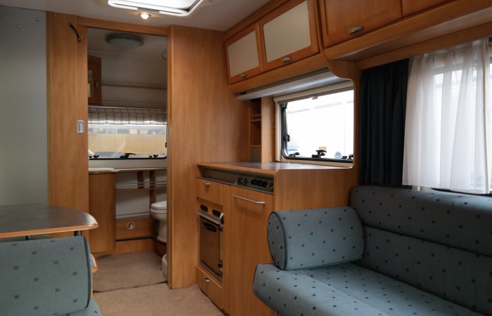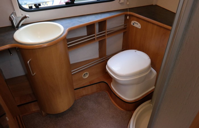 This beautiful 2 berth Hymer is in exceptional condition and has a spacious end washroom with a shower cubicle, cassette toilet with electric flush, hand basin and a good size wardrobe.