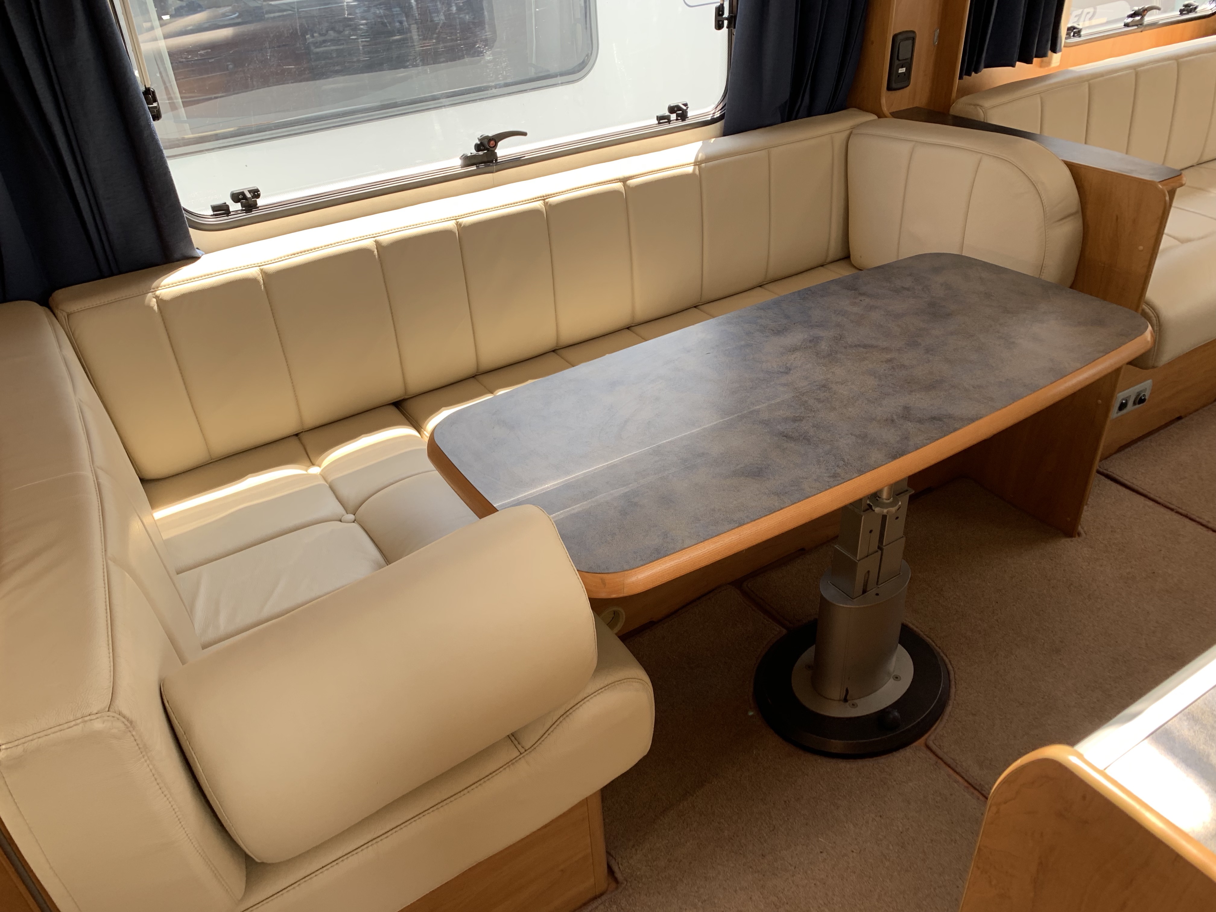 An opportunity to own a leather upholstered 3+ berth German Hymer with side dinette.