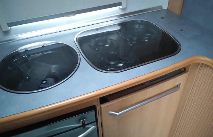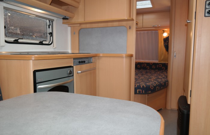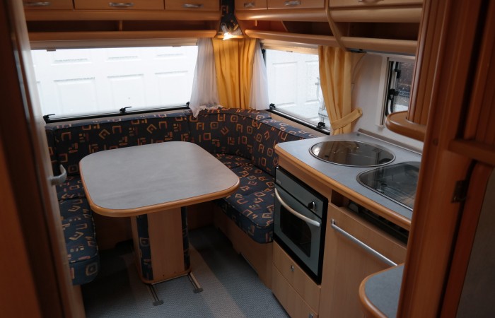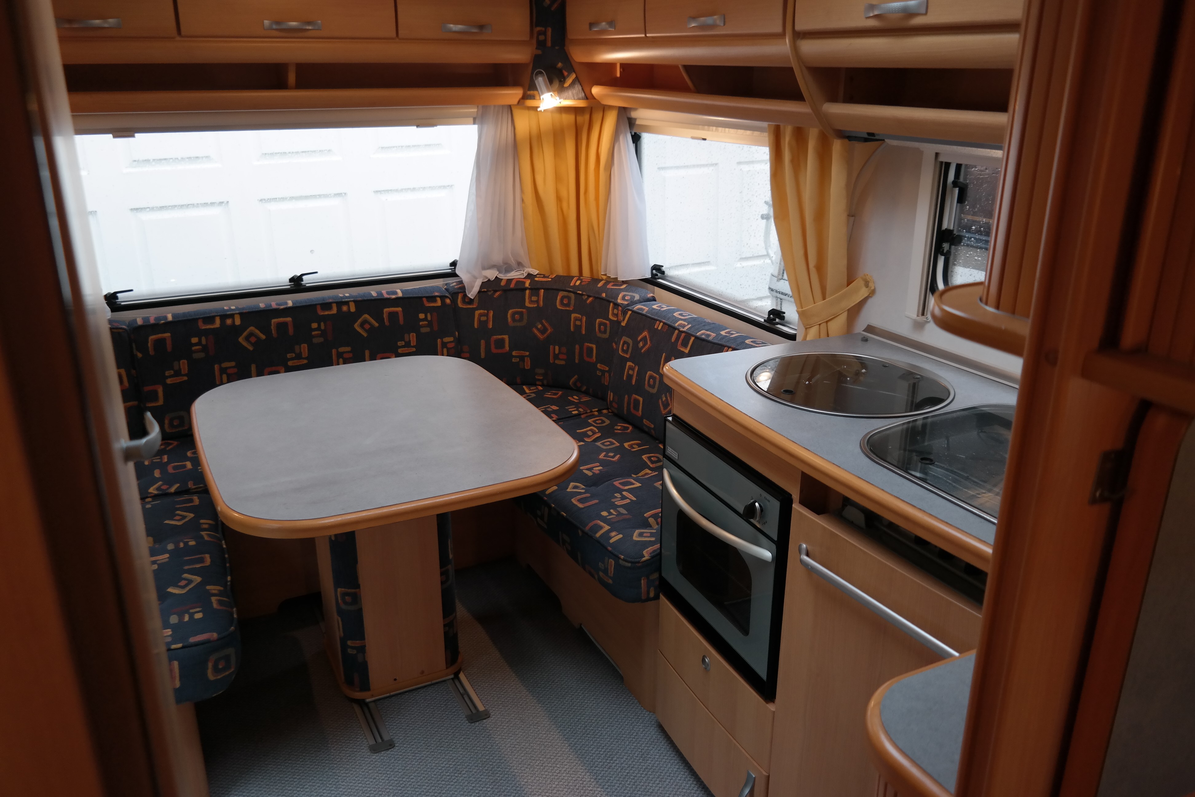 This is a very popular 4 berth German model with fixed double bed and rear “U” shaped seating that converts to a double bed.