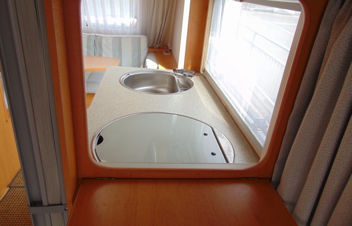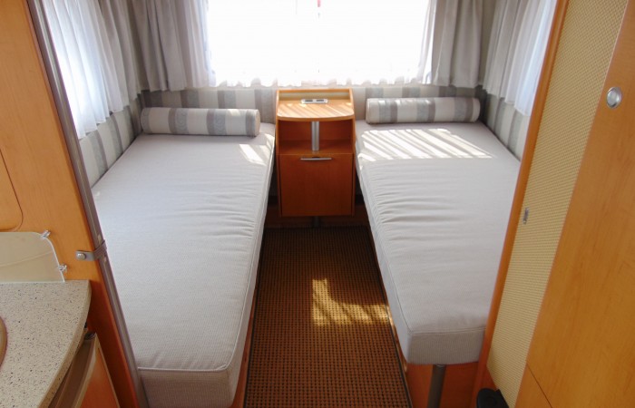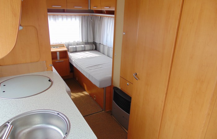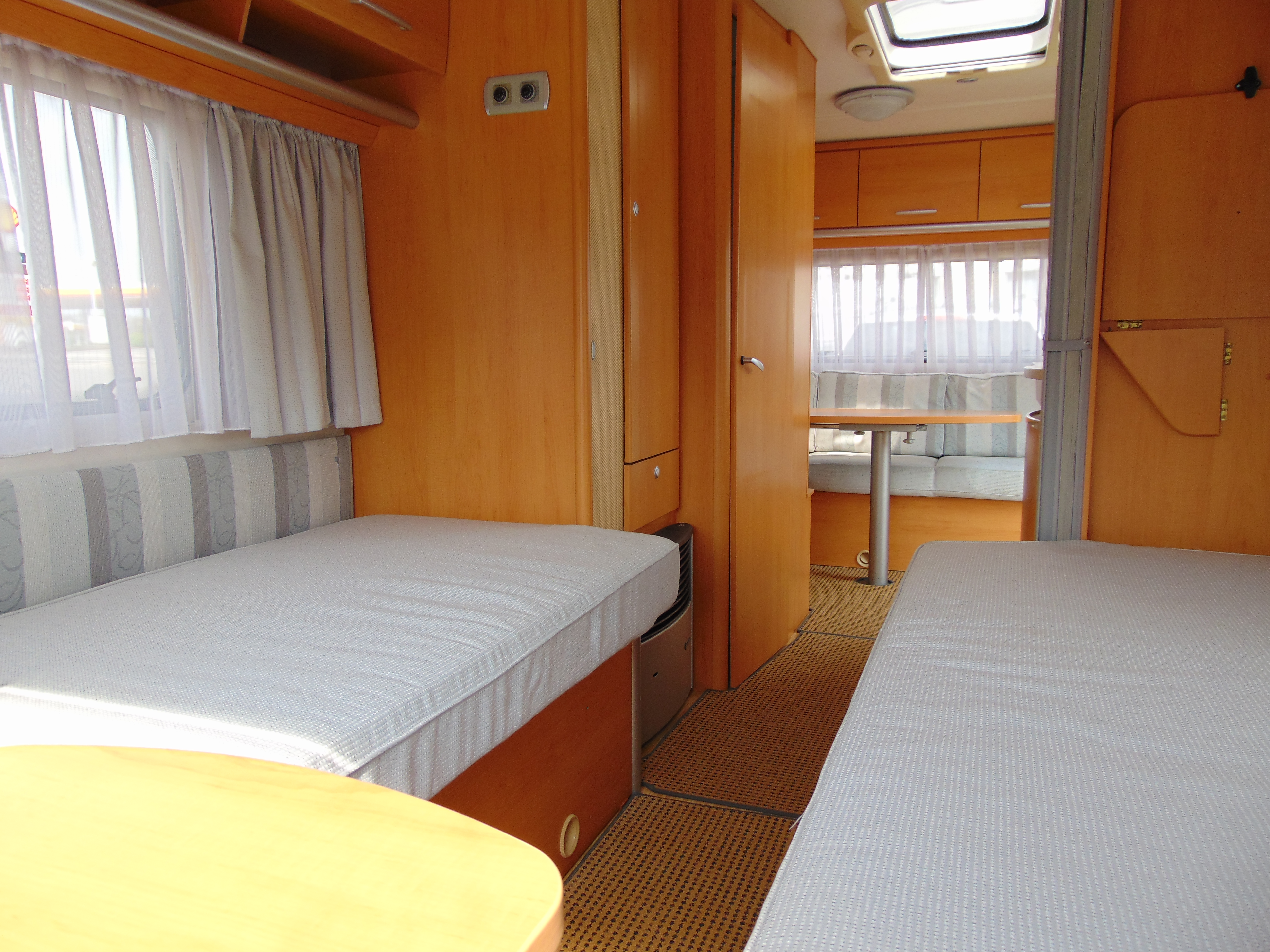 This 3 berth German Hymer provides fixed twin beds, an “L” shaped lounge, comprehensive kitchen and combined washroom.