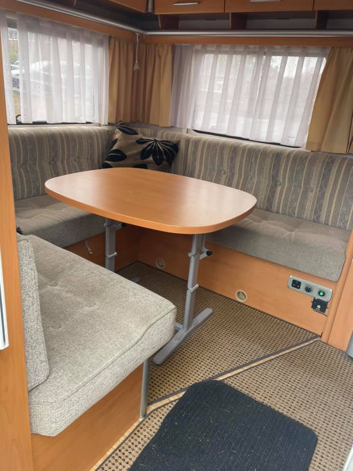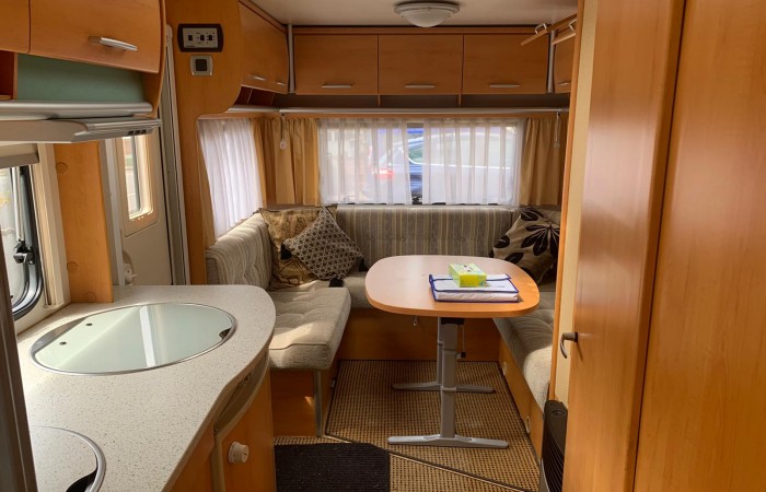 Here is another fabulous Hymer, it has two fixed comfortable beds in the front that can be used as seating and a sociable “U” shaped lounge at the rear that converts to a large double bed.