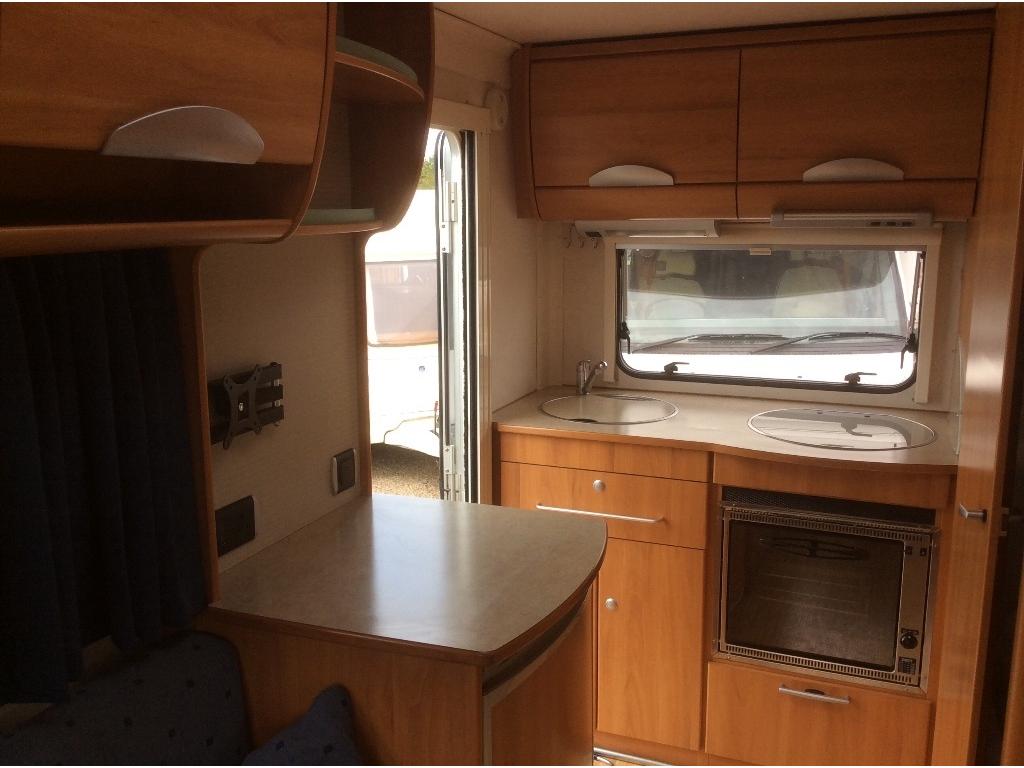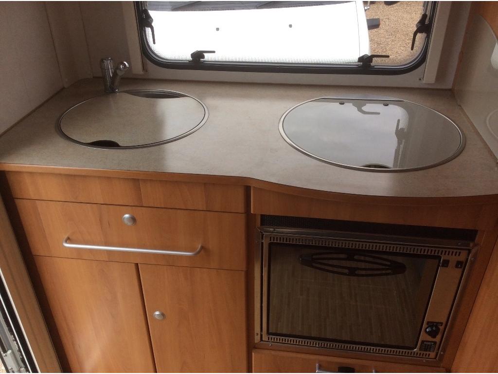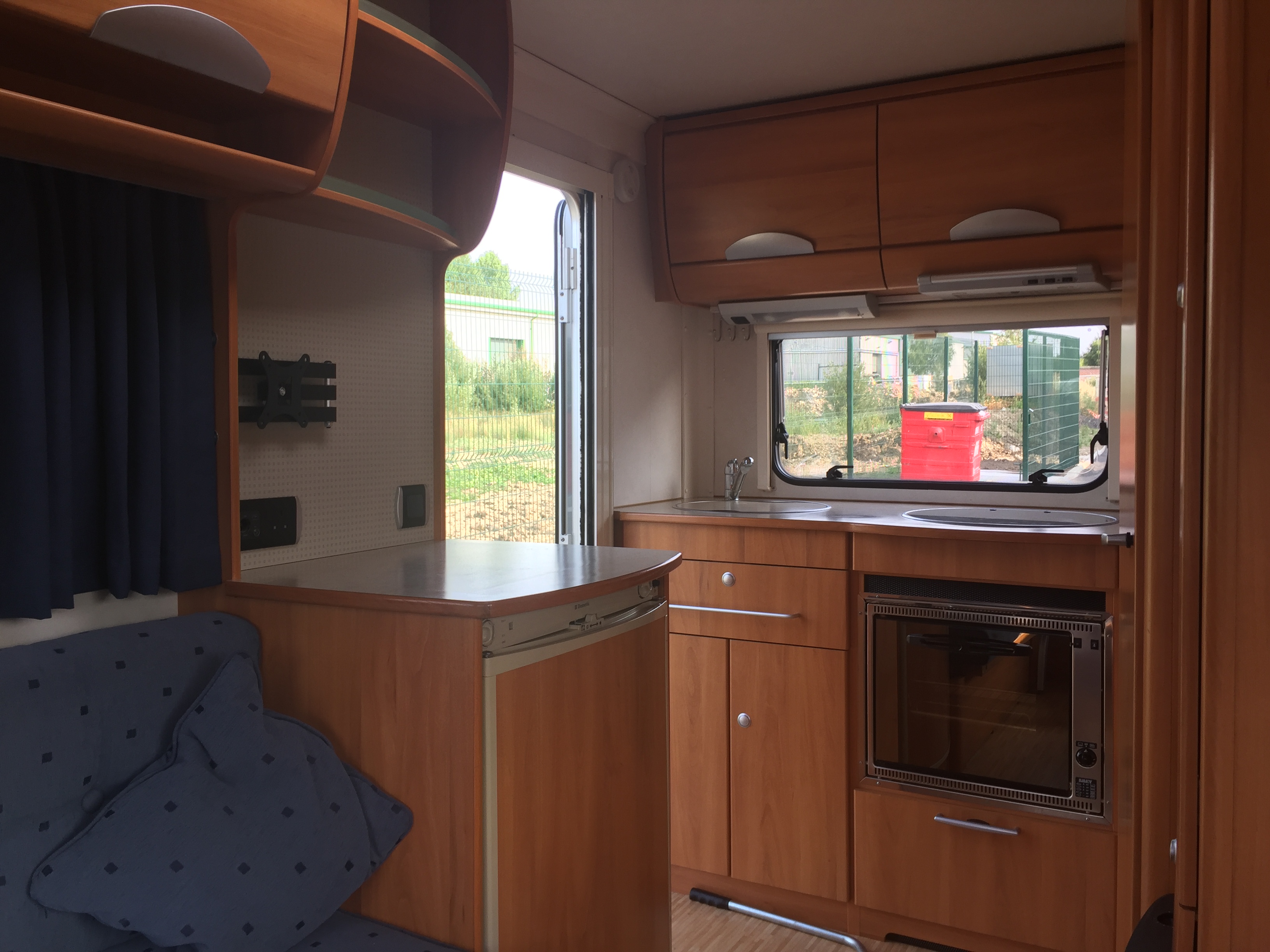 The end kitchen includes a full oven with grill, fridge/freezer, 3 burner gas hob and an extractor fan. Plenty of storage and room for a microwave.