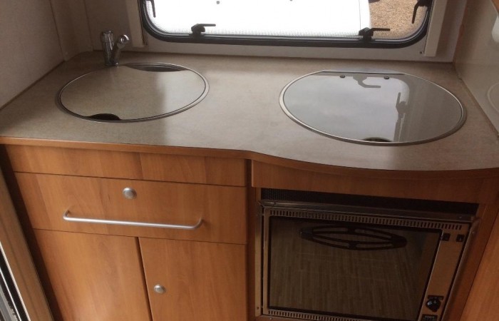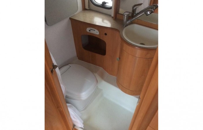 In exceptional condition this caravan has a corner washroom with an electric flush cassette toilet, hand basin and shower.