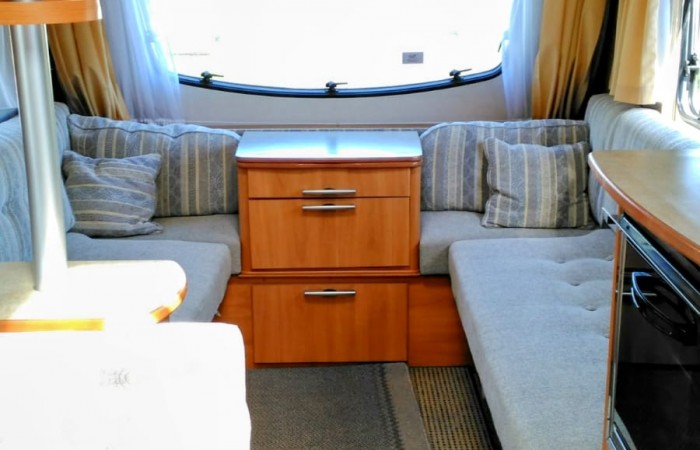 The 570 is designed for flexibility and comfort. It offers 2 people a huge amount of space, a washroom without compromise, and the option to leave a large double bed permanently made up with room to relax in the side seating/dining area