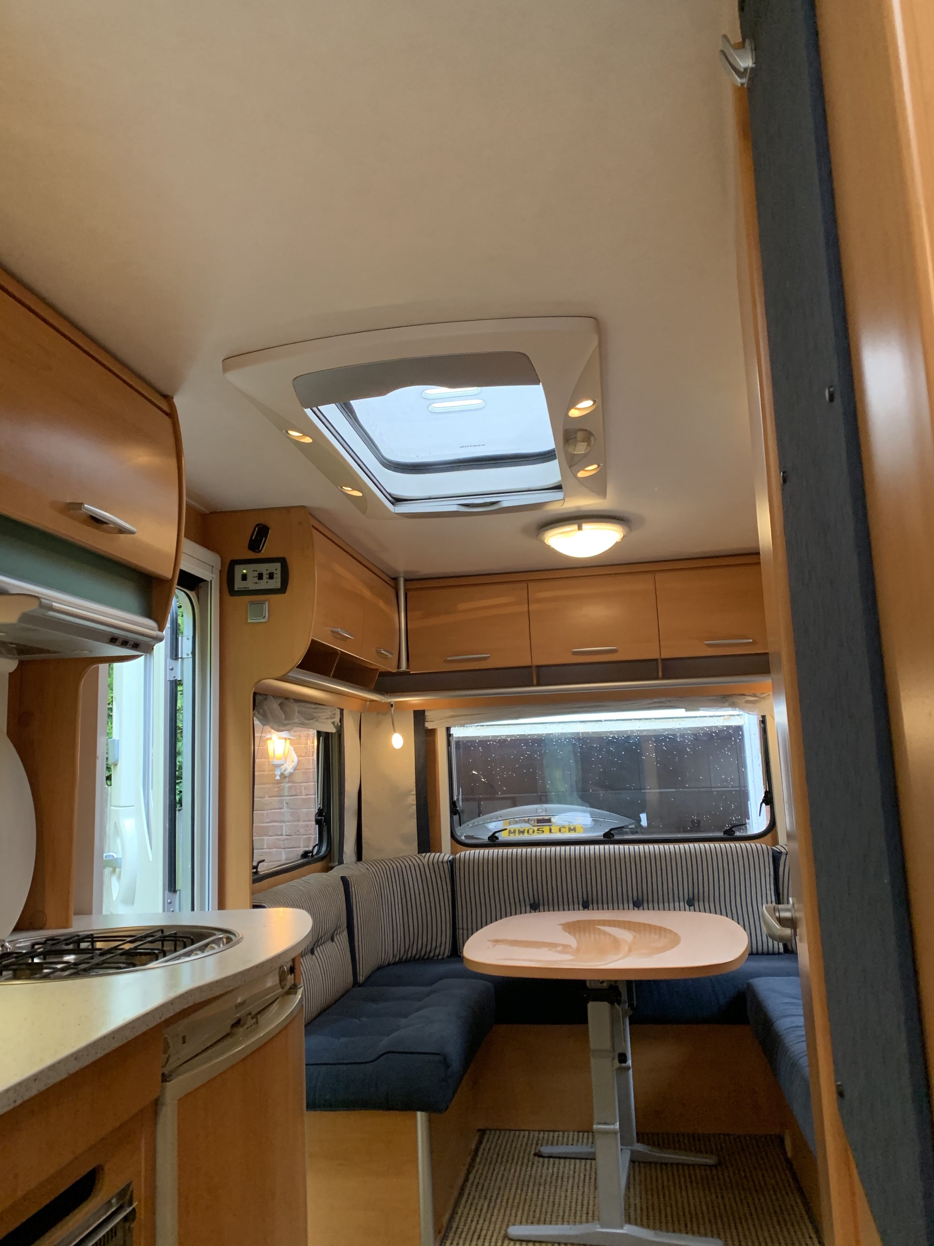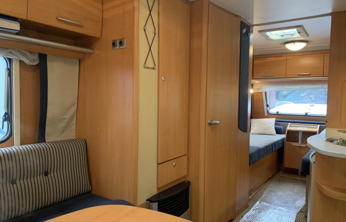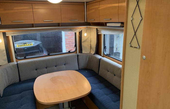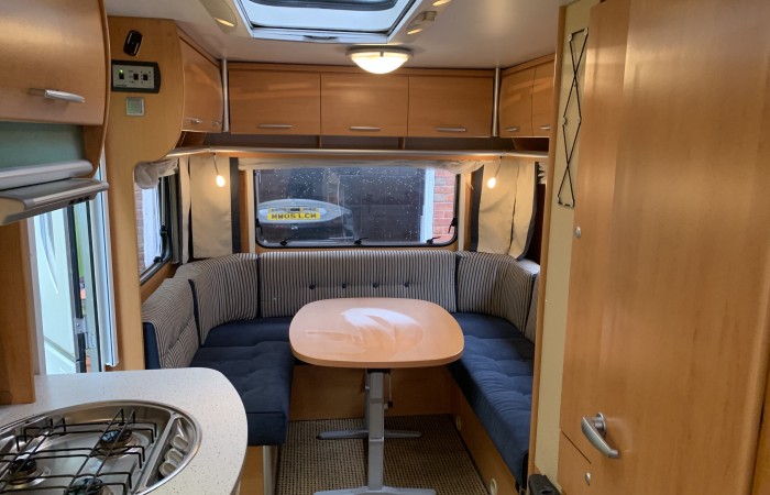 Here is another fabulous Hymer, it has two fixed comfortable beds in the front that can be used as seating and a sociable “U” shaped lounge at the rear that converts to a large double bed.