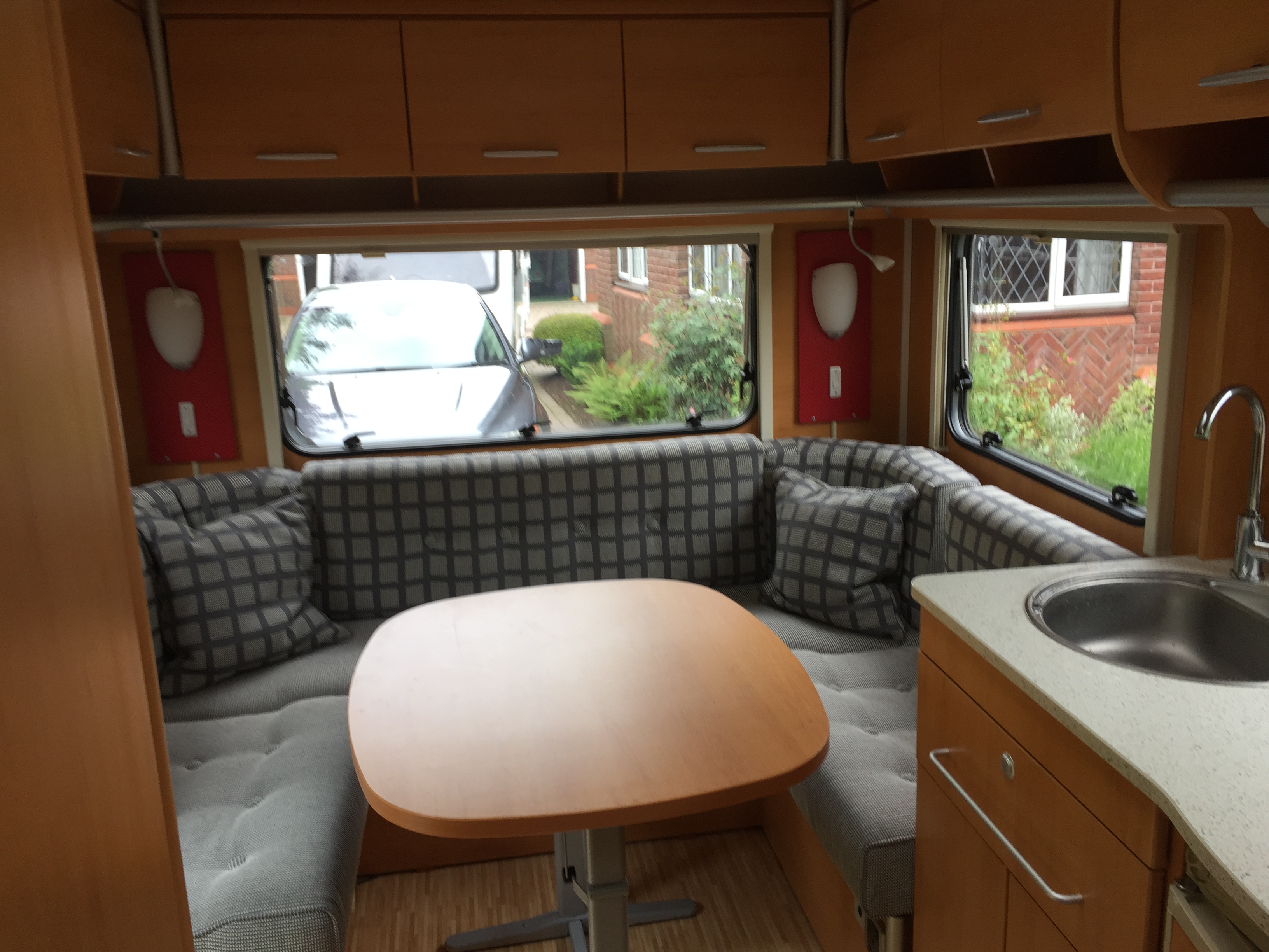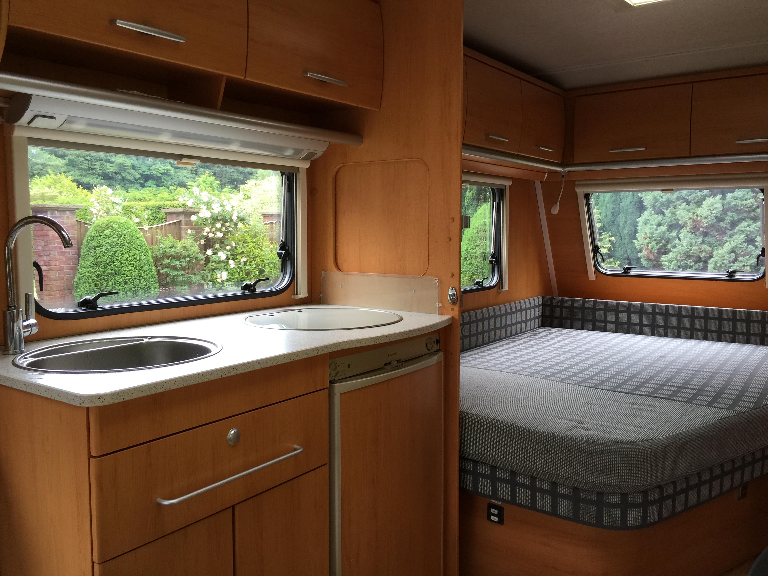 Plenty of wall cupboards and the below seats and bed is found substantial additional storage.