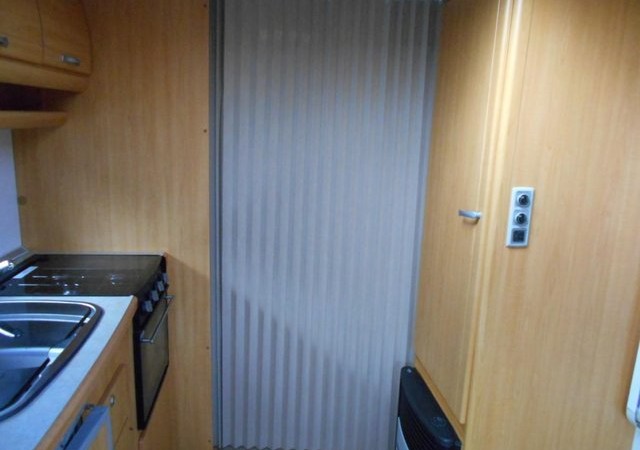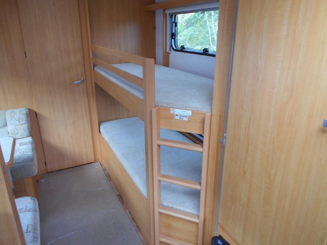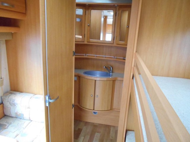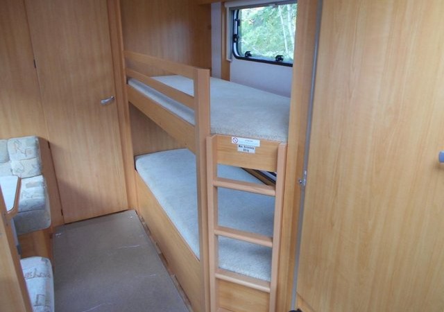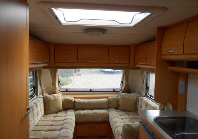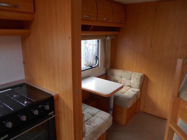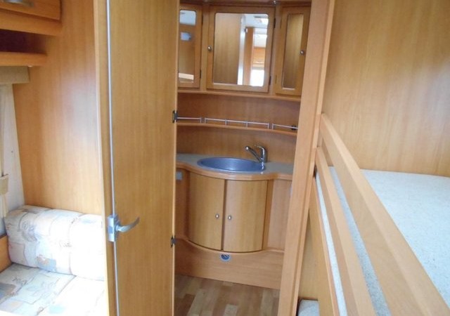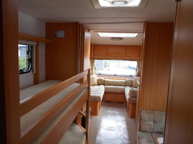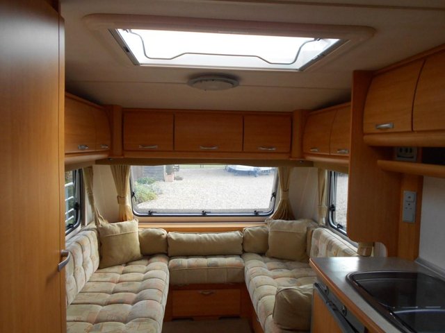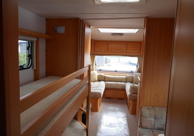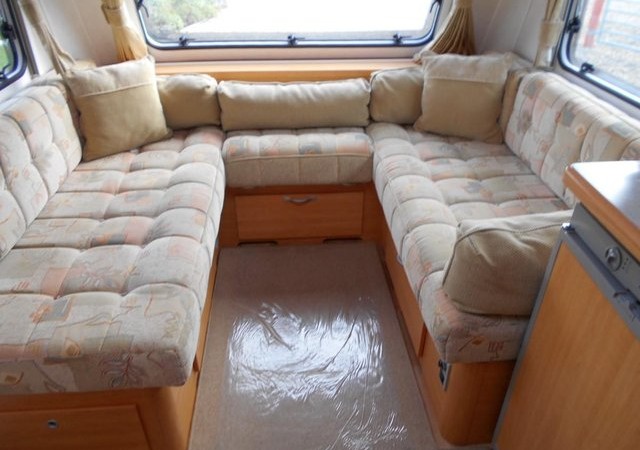 This is a 5 berth caravan with wrap around family seating, a separate area for the kids to hang out and a large washroom with cubicle shower.