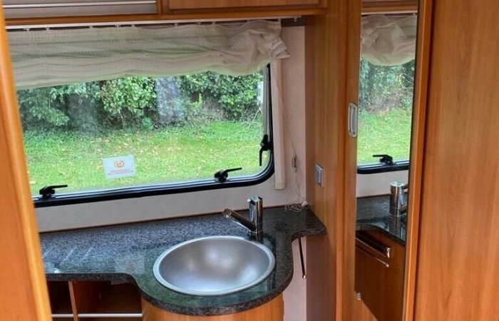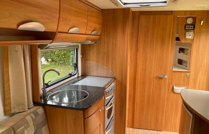 Comes with external fresh & grey water containers, battery, step, water pump, 9kg gas bottle, spare wheel & mains lead.