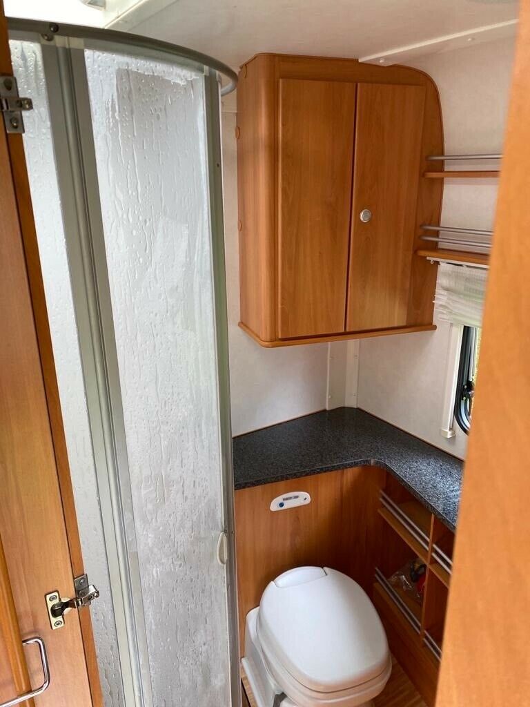 This beautiful silver sided German 2 berth Hymer with kerbside door is in exceptional condition and has a spacious end washroom with a shower cubicle, cassette toilet with electric flush, hand basin and a good sized wardrobe.