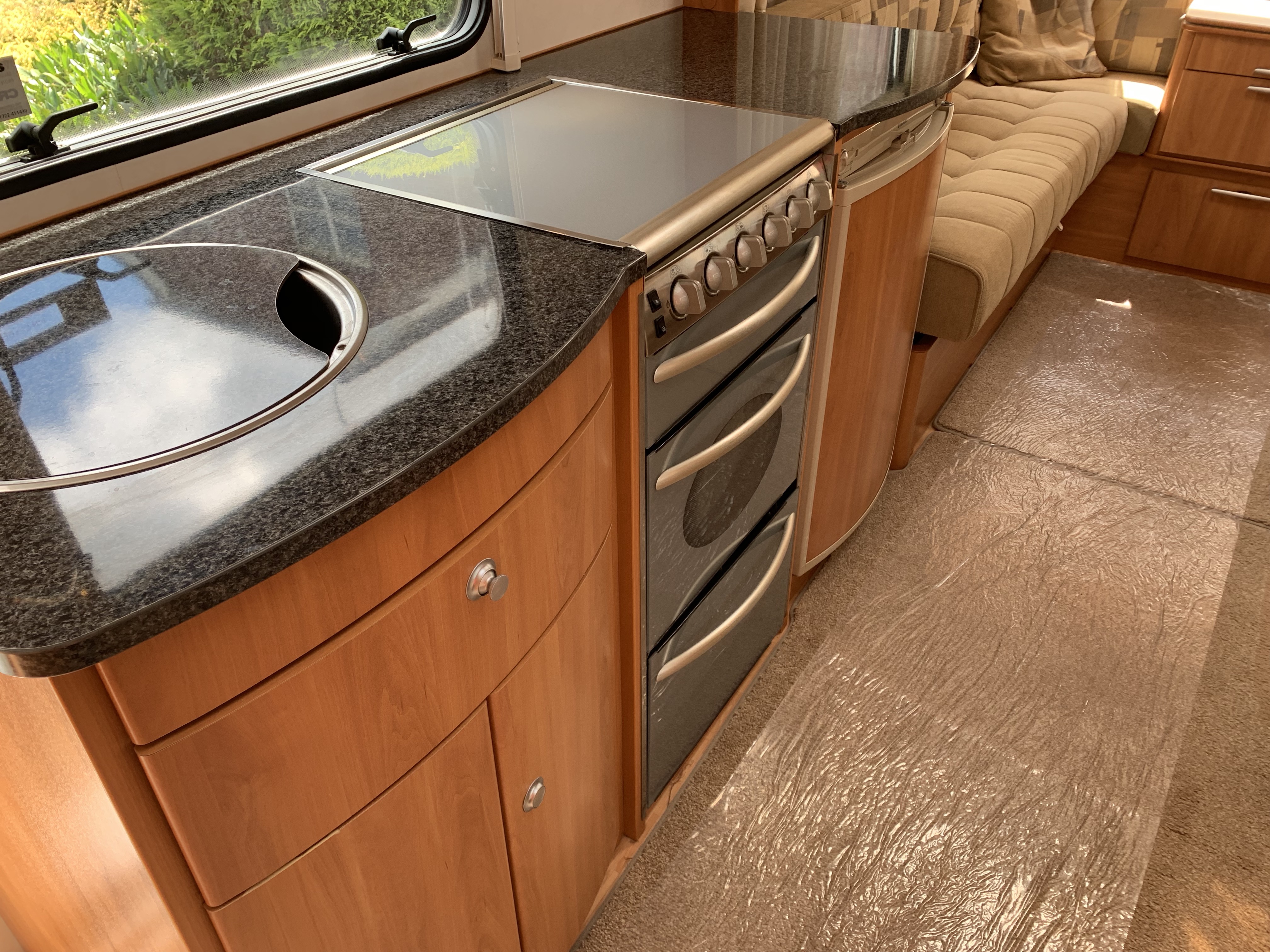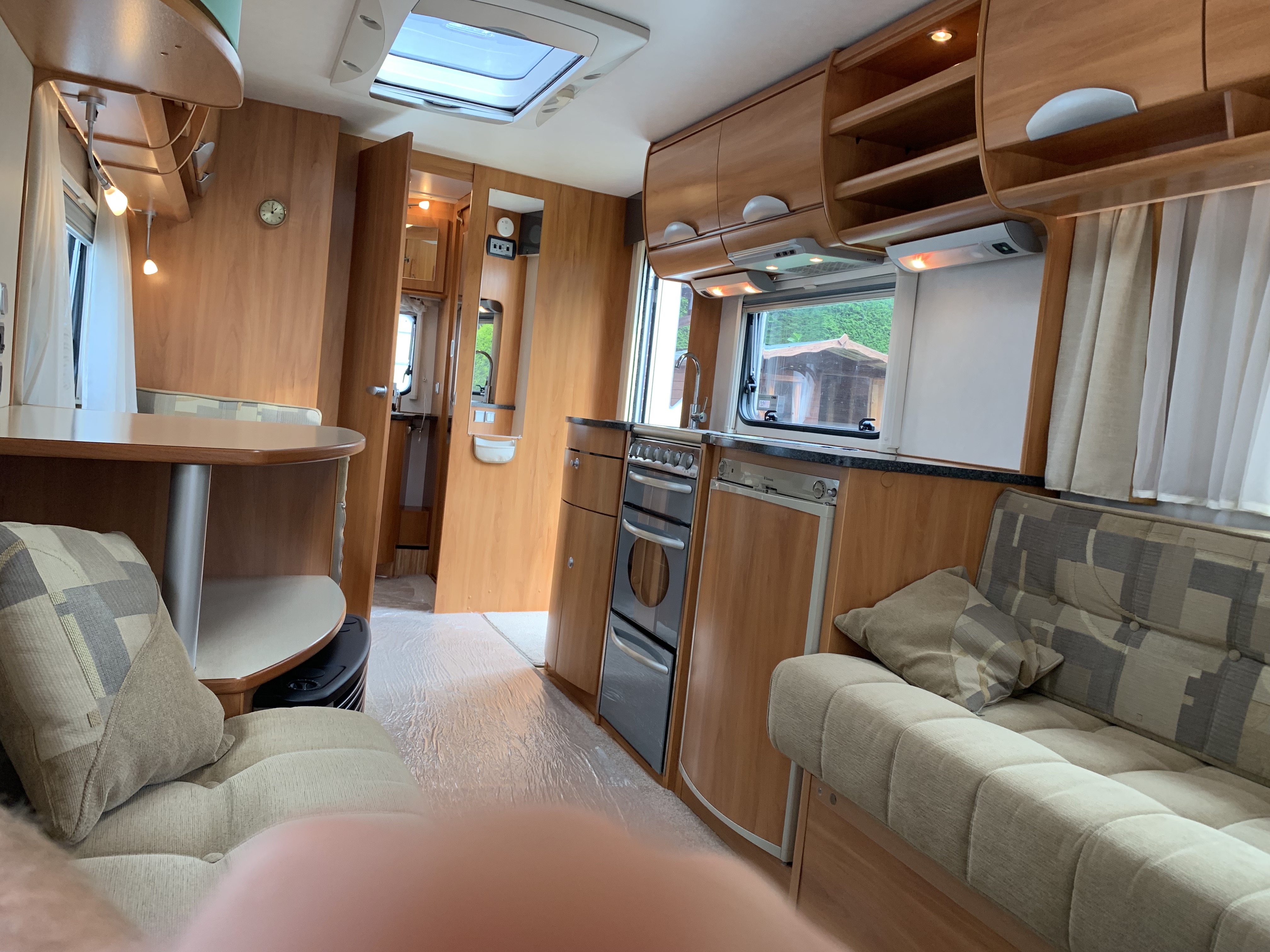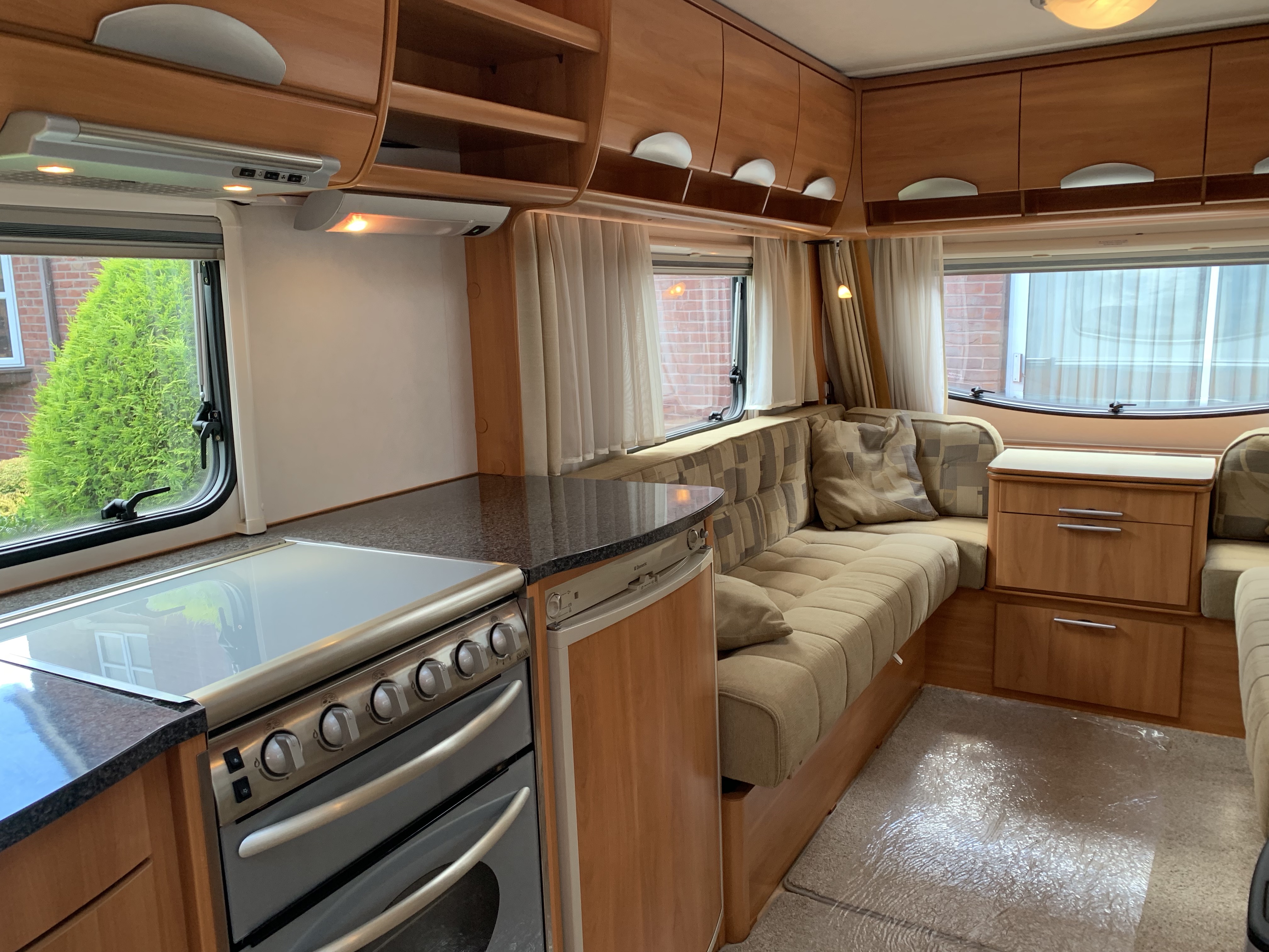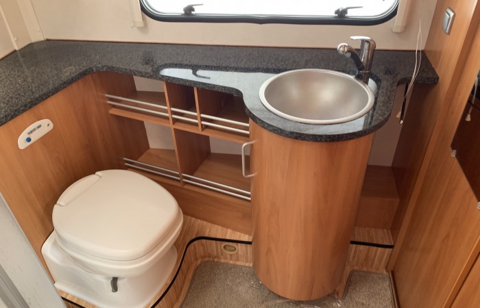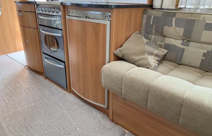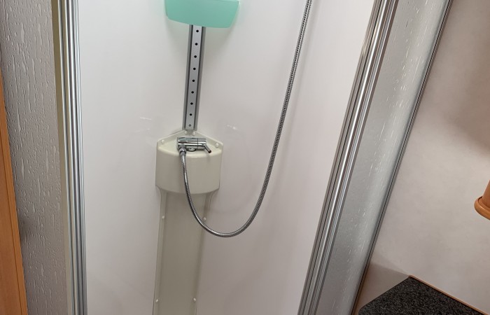 In very good condition this caravan has an end washroom with an electric flush cassette toilet, hand basin, shower cubicle and wardrobe.