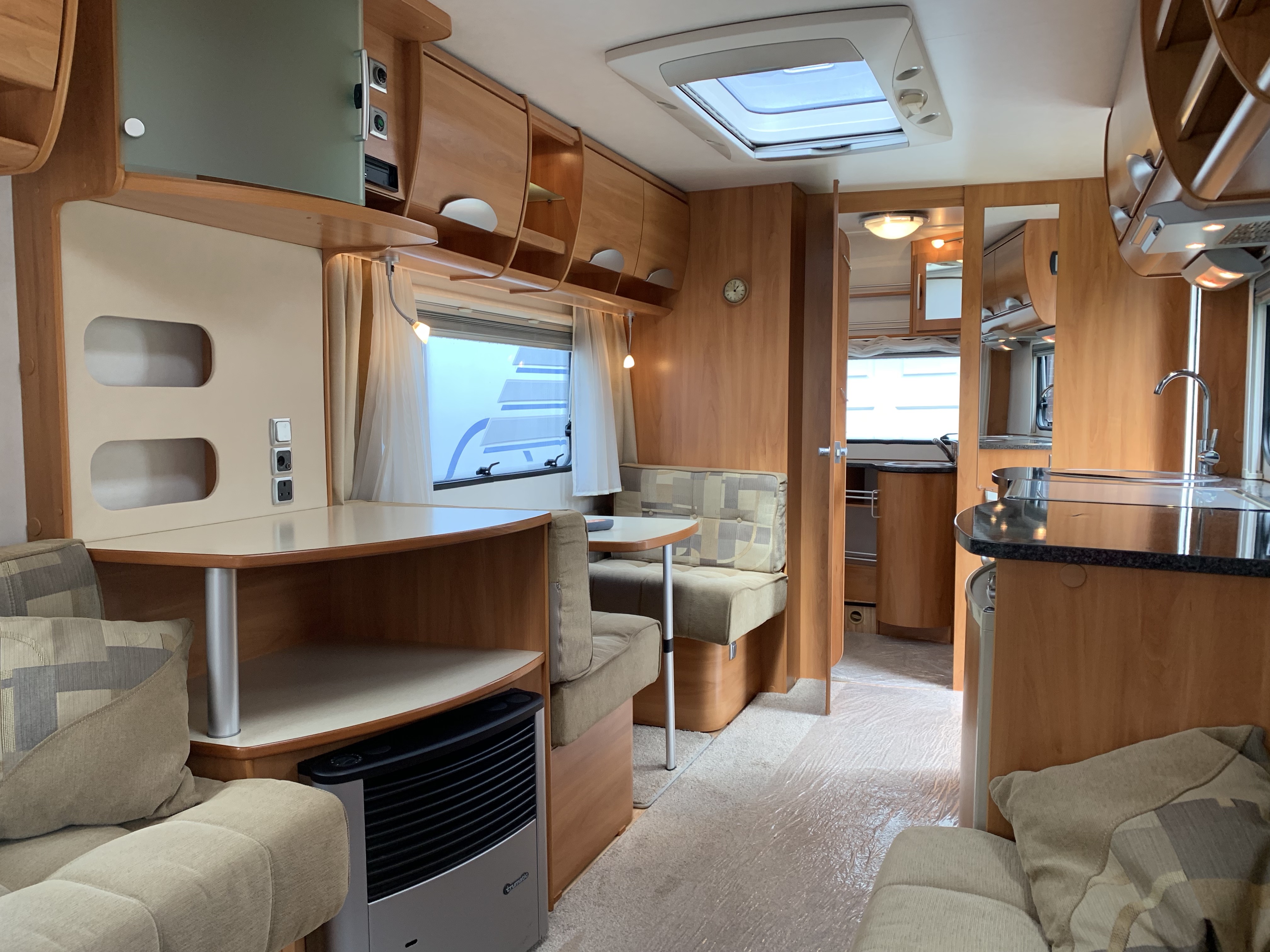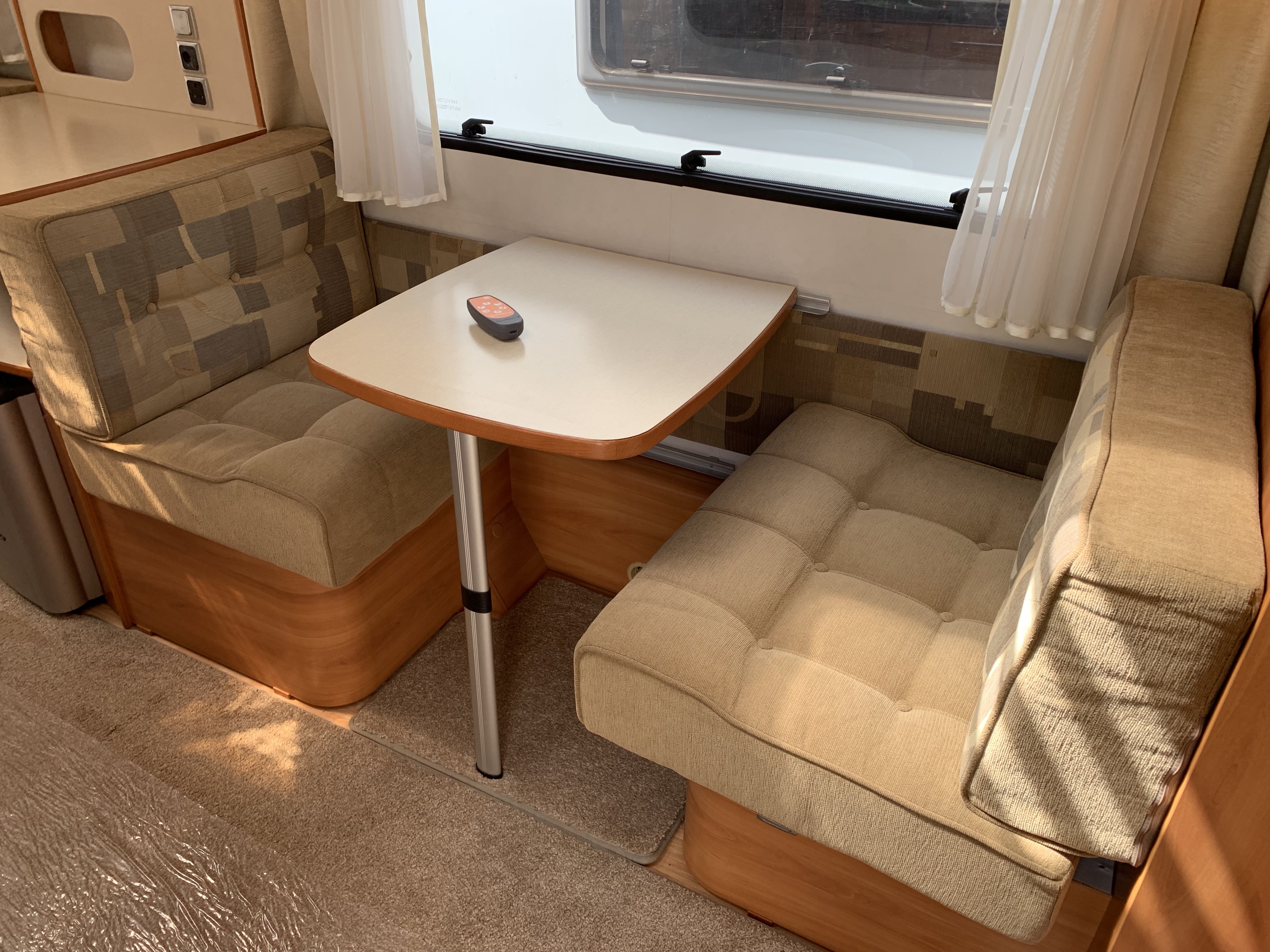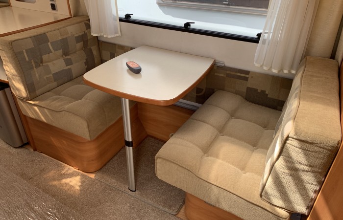 This is a wonderful silver sided 3+ berth German Hymer with side dinette. A desirable layout for those who want the option to set up the parallel seats into a double bed and still have a place to sit, read and eat. The side dinette also converts to an extra large single bed.