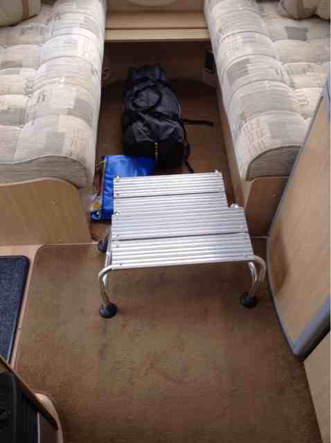 Fixed rear bed 190cm x 138cm with storage under.