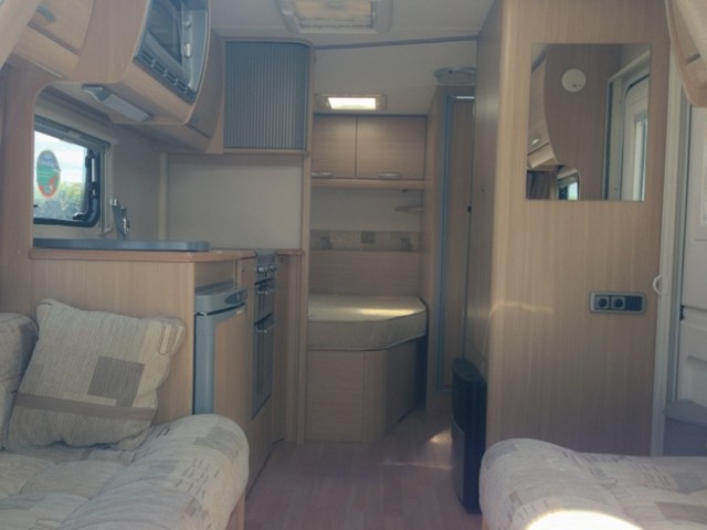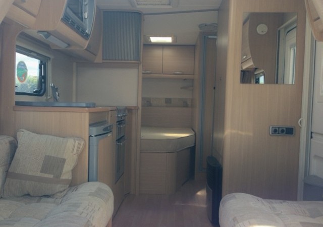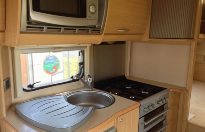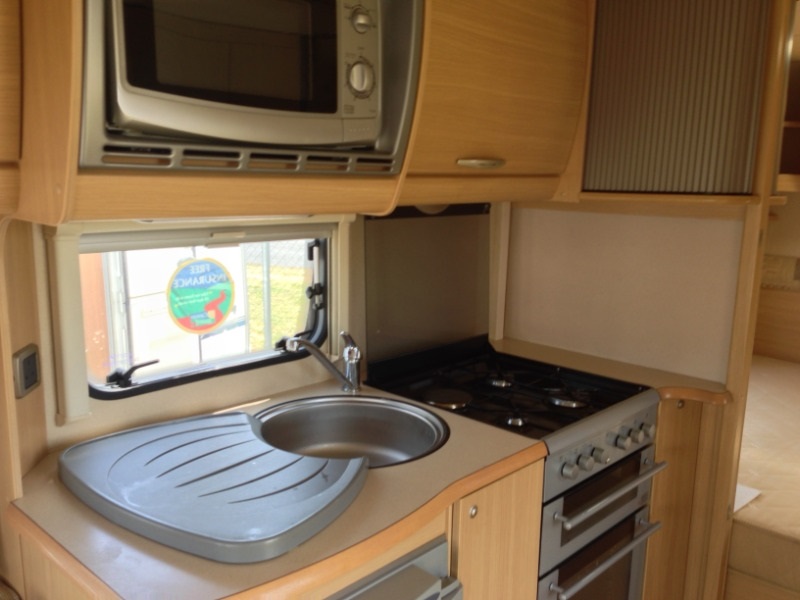 Hob with 3 gas rings and one electric hot plate, full gas oven with grill, sink & drainer, 3 way fridge/freezer (gas, 240v & 12v)