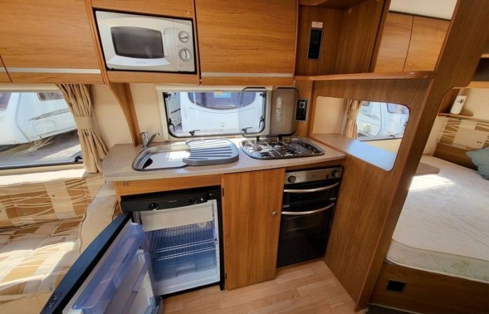 Just arrived, this highly popular fully insulated fixed bed 4 berth Bailey caravan