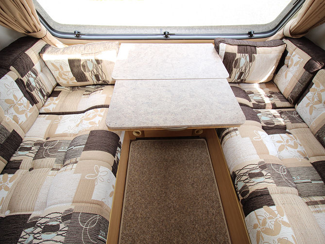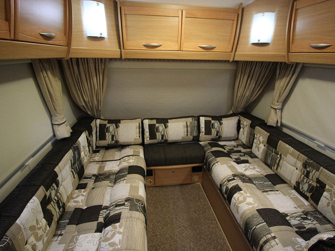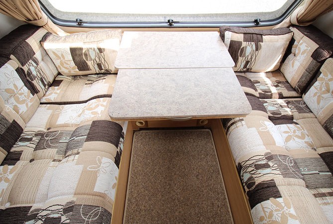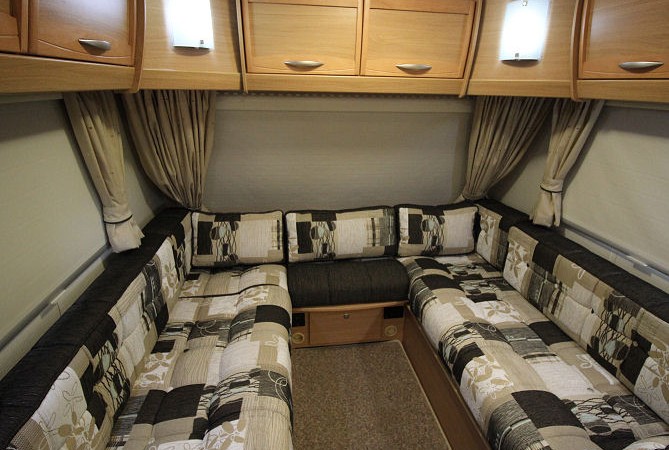 Parallel front bench seats or with the drawers removed, infill cushions provide “U” shaped seating